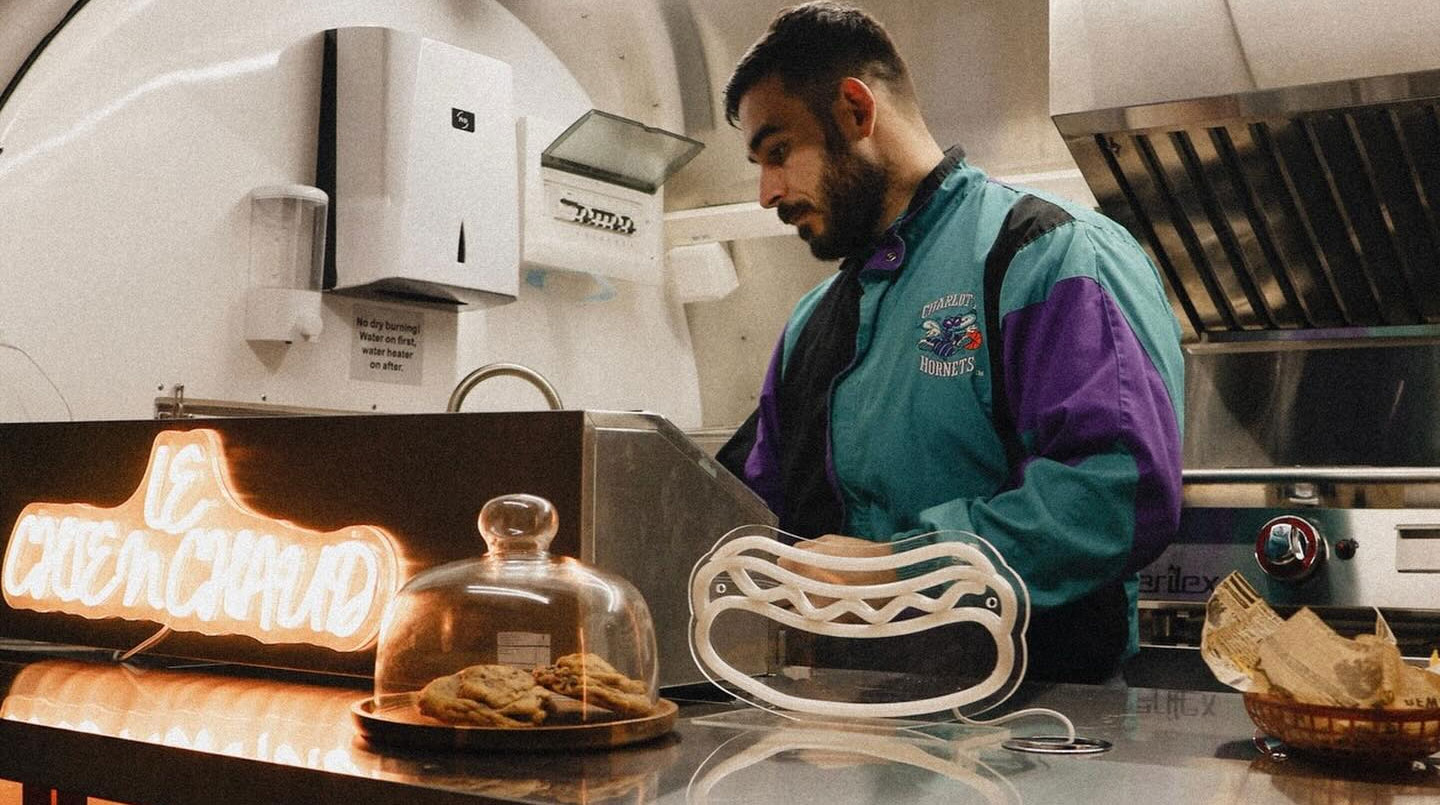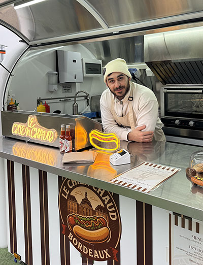 Aux commandes du Chien Chaud, Nicolas revisite le hot dog avec passion et créativité.